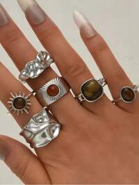 14/12/3pcs Set Asymmetrical Shaped Faux Pearl Flower, Geometric, Liquid, Round, Hollow, Multilayer Metal Textured Rings, Oversized, Chunky, Fashionable, Elegant, Vintage, Suitable For Holiday, Party, Date, Gift, Daily Wear25/20/15/5pcs Multi-Piece Stackable Vintage Coin Chunky Rings Set, Floral, Colorful Gemstone, Geometric, Knot, Asymmetrical Faux Pearl Texture, Water Drop, Wave, Multi-Layer Criss-Cross, Hollow, Heart, Minimalist, Smooth Wide Band Rings, Fashion, Elegant, Vintage, Sophisticated Design, Suitable For Holiday, Party, Date, Gift, Daily Wear #3 Bestseller