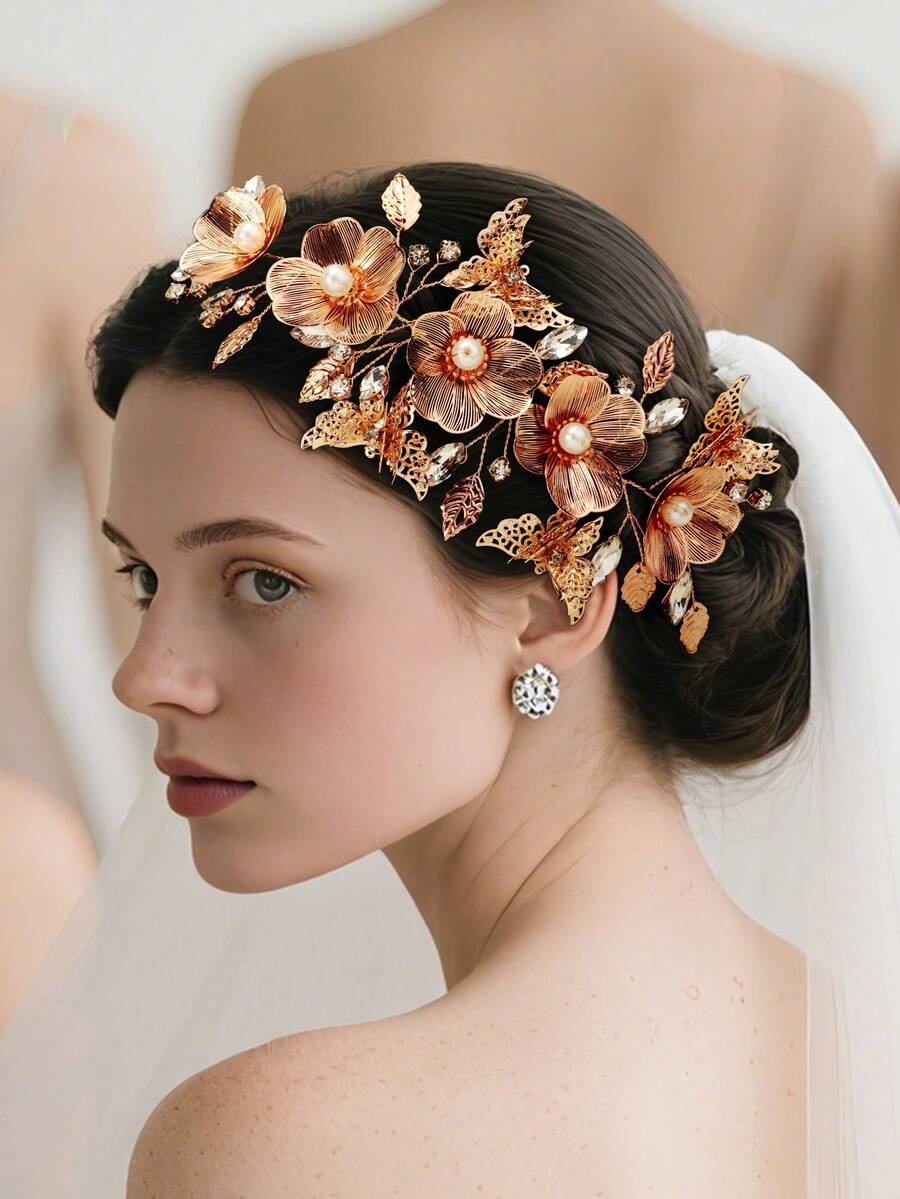 3D Butterfly & Flower Decor Elegant Bridal Wedding Headband, Romantic Style Women Hair Accessory