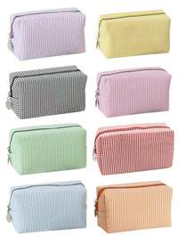 1pc Striped Women's Cosmetic Bag, Polka Dot Striped Zipper Organizer Pouch, Travel Toiletry Bag, Women's Makeup Organizer, Back To School Bag, Travel Organizer, Beach And Summer Vacation Bag, School Makeup Bag, Back To School Supplies, Cosmetic Organizer, Study Supplies Pouch, Storage Bag, And Dorm Essential Organizer