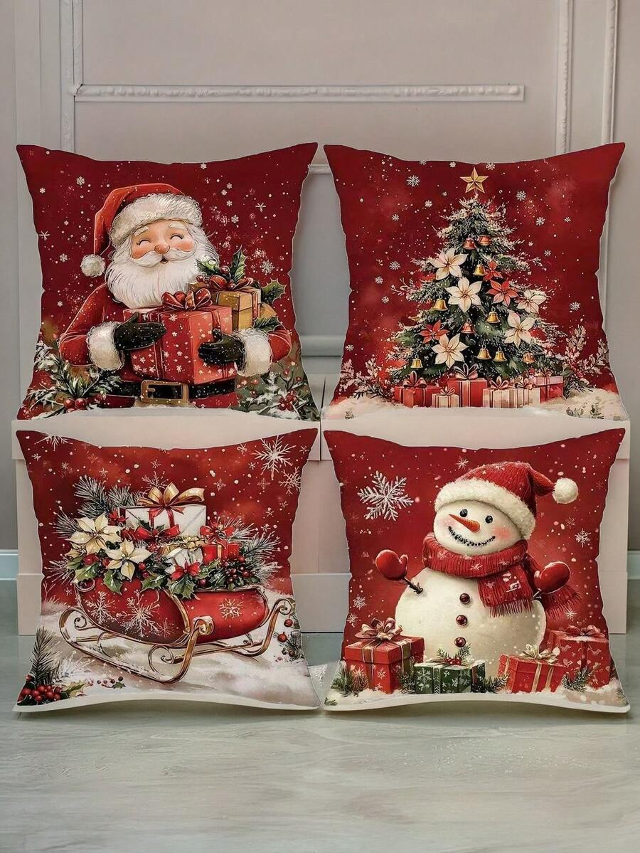 4 Pcs Christmas Pillowcases, 18x18 Inches, Zipper Closure, Retro Santa Claus And Snowman Pattern, Suitable For Farmhouse Holiday Decoration, Christmas Decoration, Home Decor, Can Be Used For Porches, Patios, Sofas, Couches, Living Rooms, Etc. Single-Sided Printing, Does Not Include Pillows. Christmas Decor Home Christmas Decorations Christmas Decorations Home Room Decor