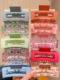 Puras5/10 piezas Pasadores de pelo cuadrados de moda multicolor, regalo adecuado para niñas lindas, aplicable para uso diario casual, adecuado para todas las estaciones - Pinzas de pelo, pasadores de pelo, pasadores para recoger el cabello, accesorios decorativos para el cabello de mujer, adecuados para salidas diarias, ocio, fiestas, ir al trabajo, vacaciones, peinado, lavarse la cara, bañarse, maquillaje, combinar con ropa, accesorios para el cabello, estilo de vacaciones en la playa