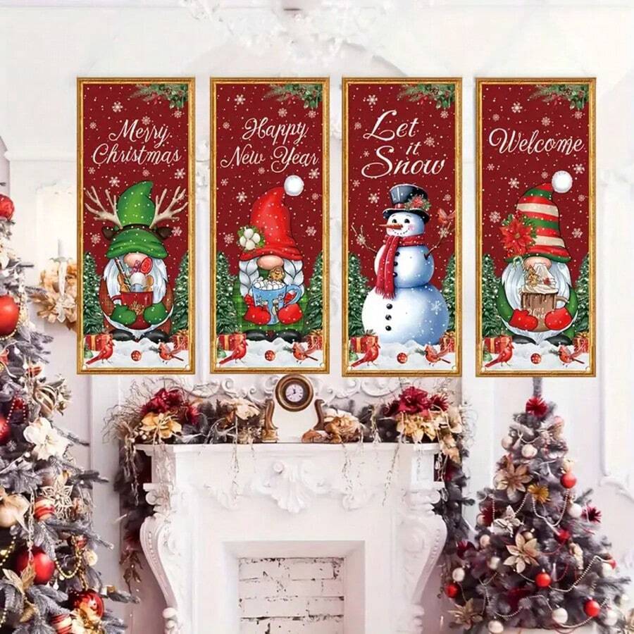 4pcs Christmas Porch Banner Set - Seasonal Holiday Outdoor Hanging Flags, Polyester, Multipurpose, No Electricity Needed, Festive Design For Doorway, Wall And Yard Decor