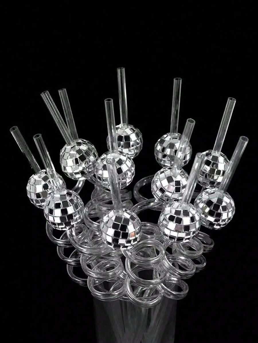 • 5/10PCS Reusable Plastic Disco Ball Straws, Disco Party Decorations, Party Favors, Mirrored Disco Ball Straws, 70s Disco Decorations, Straws Decorations For Dance Festival, Wedding, Birthday Supplies, Y2k Cool Decorations, Reusable, Kitchen, Graduation Party, Christmas Gift. 1PC,School Supplies