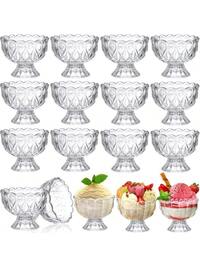 4pcs Glass Dessert Bowl - 5 Oz Mini Glass Ice Cream Cup With Base, Tulip Ice Cream Cup With Base, Small Vintage Glass Parfait Cup, Suitable For Desserts, Sundaes, Fruits, Puddings, Ice Cream, Salads, Cocktails, Condiments, English Fruitcake