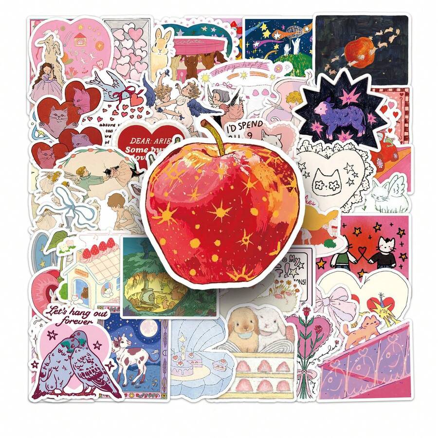 50pcs Vintage Cartoon Fairy Tale Stickers, Cute Retro Aesthetic Sticker Set, Watercolor Fashionable INS Style Stickers, Waterproof Vinyl Stickers Suitable For Water Bottles, Computers, Laptops, Phones, Luggage, Notebooks, Refrigerators, Etc.