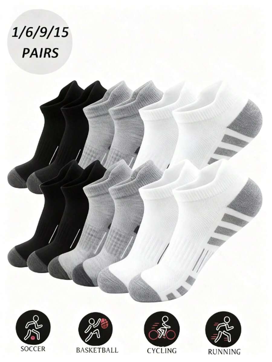 15 Pairs (5 Black + 5 White + 5 Gray)