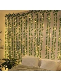 1pc Green Leaf Vine Decorative String Lights, Battery Powered, Hanging Vine, For Bedroom, Party, Wedding, Christmas, Thanksgiving, Four Seasons Decoration, Home, Fireplace, Stairs, Handrails, Balcony, Corridor, Curtain Decoration #9 Bestseller