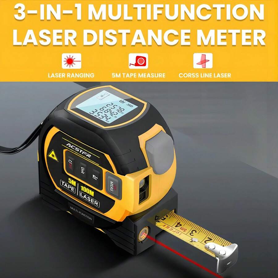 ACSTFR Laser Tape Measure - 3in1 Digital High Precision Laser Rangefinder, Steel Tape, 1pc, Equipped With 2AAA Batteries