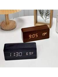 madeby BLANCWooden Digital Alarm Clock, Fashionable Multifunctional LED Alarm Clock, USB Powered, Cannot Be Powered By Battery, Requires Data Cable. Features Temperature Display. Room Decor, Bedroom Decor, Dorm Decor, Back To School Decor, School Surprise, Home Decor, Study Supplies.