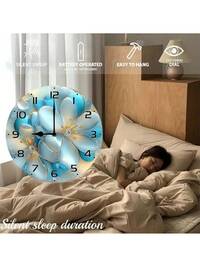 10inch Elegant Floral Wall Clock - Silent Non-Ticking Round Wooden Clock, Turquoise Blue And Gold Pattern Design, Battery Operated (AA Batteries Not Included) - Ideal For Living Room, Bedroom, Wedding, Party Decoration - Luxury Home Centerpiece, High-Quality Craftsmanship, Fashionable Timepiece, Wedding Planner/Room Decoration, Bedroom Decoration, Puerto Rico, Christmas Decorative Wall Clock
