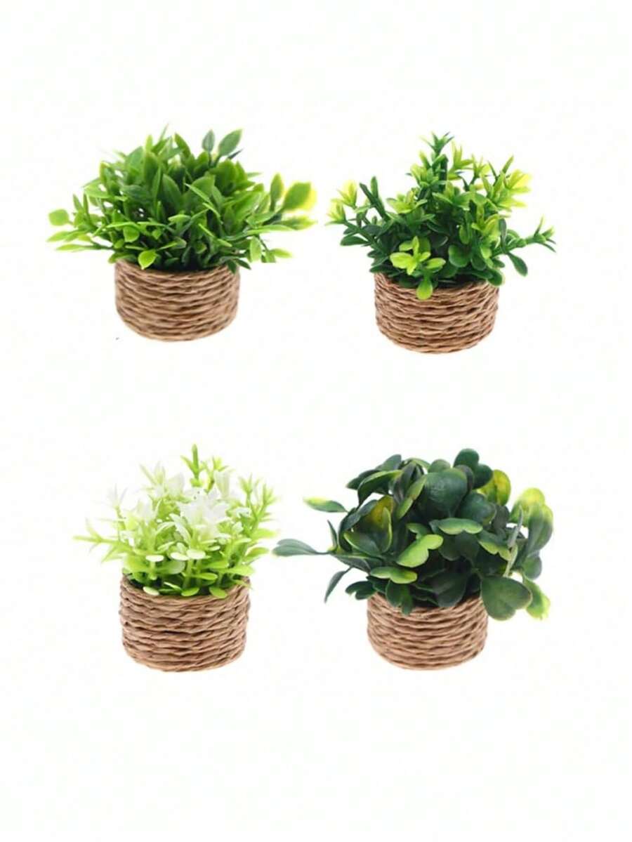Artificial Woven Rattan Small Potted, Miniature Artificial Bonsai Plants Tiny Greenery, Faux Greenery Planter Pot Ornament, For Dollhouse Decoration, Mini Scenery Photography Props Low Maintenance Vivid Appearance, For Desktop Party, Kitchen, Garden Decor, Christmas Holiday Gift Home Decor, Back To School, Room Decor, School Supplies