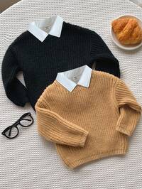 PipplinSHEIN Toddler/Baby Boy/Girl Solid Color Turtleneck Sweater, Comfortable & Fashionable Casual All-Match Knit Top, Suitable For Indoor, Outdoor, Daily, Sports, Play, Party, Photo Shoot, Holiday, Autumn/Winter