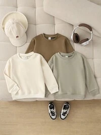 SHEIN 3pcs/Set Thickened Fleece Baby Boy Sweatshirts (Without Pants), Solid Color Dinosaur Print Crew Neck Long Sleeve Sweatshirts, Comfortable Casual Daily Wear, Suitable For Indoor, Outdoor, Sports, Party, Photography, Festival, Streetwear, Christmas, New Year, Autumn/Winter