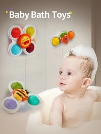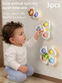 3pcs Suction Cup Rotating Toys Suitable For 1-3 Years Old Boys & Girls - Fit For 12-18 Months Children - Rotating Sensory Toys - 1st Birthday Gift, Baby Essentials, Baby Toys, Baby Boy, Bathroom Toys, Girl Toys, Kids Toys, Toddler Toys, Sensory Toys, Children Toys, Baby Pacifier, Baby Bathroom Toys, Baby Supplies, Baby Stroller Baby Teether Cute Bear Spinning Toy, Manhattan Baby Sensory Gripping Ball Toy, Montessori Learning And Development Toys, Suction Cup Spinning, Designed For Newborns, Soothing Teether, Soothes Baby's Emotions, Promotes Motor And Cognitive Development, Suitable For Newborns 0-3 Years Old, For Both Male And Female Babies (Accessory Colors Randomized), Suitable For Back-To-School Season, Halloween, Christmas
