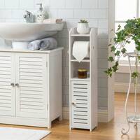 Estantería lateral para inodoro, estantería de almacenamiento para baño, estantería para papel higiénico, estantería para baño, soporte y ganchos para pañuelos, en blanco, negro, gris, temporada de vuelta al colegio, resistente al agua, a prueba de humedad, resistente y duradero#10 Más vendidos