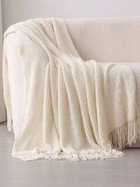 1pc Blanket, Bedding, Comfortable & Warm, Skin-Friendly & Breathable, Lightweight & Soft, White, Minimalist & Fashionable Design, Suitable For Sofa, Bedroom, Living Room, All-Around Comfort, Travel Essential, Nap Blanket, Multiple Sizes Available, Machine Washable, Room Decor, Winter Decor