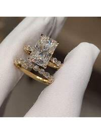2Pc Luxury Women's Fashion Zirconia Wedding Ring Set, Suitable For Valentine's Day, Vacation, Commuting, Dating, Party, Weddings, Engagements, Proposal Rings, Suitable For Wife, Girlfriends, Anniversary, New Year Gifts, Suitable For All Seasons#4 Bestseller
