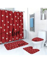 1/3/4 Piece Pink Elegant Rose Shower Curtain Set, Bathroom Window Curtain Shower Set, Shiny Bathroom Shower Curtain, Bathroom Set, Waterproof Shower Curtain, Bathroom Accessories, Bathroom Rug, U-Shaped Toilet Mat, Toilet Seat Cover, Bathroom Decor With 12 Hooks, Home Decor, Daily Decoration1/4pcs Gold & Green Tropical Leaf Theme Bathroom Set, Includes Shower Curtain, Bath Mat, U-Shaped Toilet Mat, Toilet Lid Cover, Waterproof Shower Curtain, Fashionable Curtain For Bathroom Decor, Modern Style Bathroom Divider Curtain, No Drilling Required, Made Of Polyester, Machine Washable