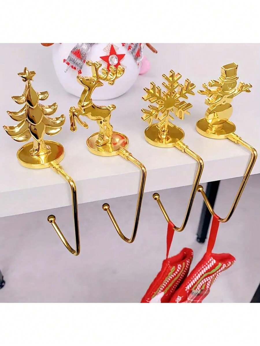 Christmas Stocking Holders For Fireplace Mantel - Metal Decorative Hooks For Holiday Socks And Gifts - Elegant Festive Decor