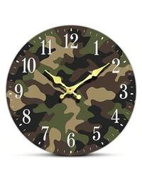 1 Round Wall Clock, Camouflage Clock, Classic Army Green Soldier Woodland Print Brown Silent Non-Ticking Wooden Clock, Suitable For Bedroom, Living Room, Office, Kitchen, Bathroom, Battery-Powered (Battery Not Included), 10inch,Valentines Gift,Living Room Deccor,Home Deocr,House Essentials