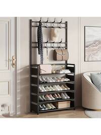 This Five-Tiered Multi-Functional Shoe And Hat Rack Is A Christmas Gift. It Features Eight Hooks, A Multi-Layered Design, Independent Storage Space, And A Large Capacity To Store Shoes, Boots, Clothes, Hats, And Bags. Organize Everyday Items And Save Space. Made Of Durable Plastic And Metal, It Can Also Hang Bags, Hats, And Umbrellas, Making It Suitable For Family Use.#3 Bestseller