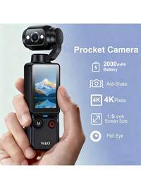 W&O Cámara de video con grabación en 4K y 1.9" HD - Portátil, recargable, cámara para videoblogs, estabilizador de mano 4K, cámara deportiva de bolsillo con gimbal, estabilizador de mano 4K, imán, perspectiva de 180°, cámara corporal, carga USB, rotación de 180°, sensor CMOS de 1.9", perfecta para video y grabación de video, ideal para grabación de la vida cotidiana y viajes#1 Más vendidos