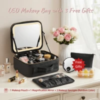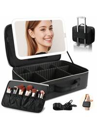 LED Makeup Case With A Detachable Lighted Mirror, Portable Travel Makeup Box With Adjustable Dividers, Cosmetic Organizer And Small Makeup Bag With Magnetic LED Mirror(Black),Travel Essential,Travel,Valentine's Day,Room Decor,Purse Essentials,Makeup Bags For Women,Purse Essential Items,Cruise Essential,Designer Handbags,Basics,Vanity Essentials,Room,Cute Makeup BagLocal