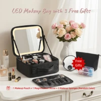 LED Makeup Box With Double Drawers, Travel Train Case With A Detachable Lighted Mirror, Cosmetic Organizer And Makeup Suitcase With Adjustable Dividers, Professional Makeup Case With Magnetic LED Mirror, Best Gifts For Her,Travel Essential,Travel,Valentine's Day,Room Decor,Purse Essentials,Makeup Bags For Women,Purse Essential Items,Cruise Essential,Designer Handbags,Basics,Vanity Essentials,Room,Cute Makeup Bag