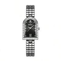 Reloj de cuarzo vintage clásico con forma de arco para mujer - Esfera cuadrada elegante con pequeña esfera y decoración de cristal mineral y strass