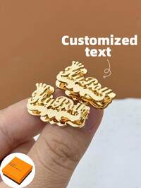 1 Pair Personalized Name Earrings (Leaf Shape, Round, Decorated With Exclamation Mark), Customized Font, African Style Earrings, Large Size Earrings. Unique Earrings, Suitable As Gifts, Handmade Earrings, Gold Earrings, Personalized Earrings. Fashionable Accessories, Matching Outfits, Stainless Steel Earrings. Local