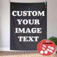 1 pieza Tapiz personalizable con fotos y texto, para cumpleaños, boda, Halloween, Navidad, fiesta, Día del Padre/Madre, decoración del hogar, estética del dormitorio, decoración y telas colgantes para dormitorios de estudiantes al comienzo del año escolar, ambiente acogedor#8 Más vendidos
