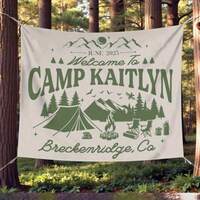 Tapiz personalizado de despedida de soltera de campamento, pancarta personalizada de fiesta de despedida de soltera de campamento, regalo de ducha nupcial de bosque, decoración de campamento. Tapiz impreso de 95 g/m² de 50 x 60 pulgadas (aproximadamente 137,2 x 152,4 cm) con patrón personalizable, adecuado para decoración del hogar para mejorar la atmósfera, bandera personalizada. Artículos esenciales para el hogar, artículos esenciales para el dormitorio, adecuados para oficina, campamento, viaje, decoración del hogar, bandera personalizada. Mantas de Acción de Gracias, Día de San Valentín, Navidad, Boda, Año Nuevo, regalos para ella, él, familia, novio, novia, padre, familia, madre, amante, hija, hijo, abuelo, abuela, amigos, compañeros de clase y mascotas para proporcionar regalos personalizados ideales. Sofá, cama, coche, dormitorio, sala de estar, oficina, campamento al aire libre