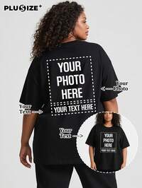 Camiseta de algodón puro personalizada para mujer de talla grande, hecha de 35% algodón y 65% poliéster, perfecta para primavera y verano. Personalizable con texto/nombre/mensaje/frase divertida, y la opción de cargar tus fotos/amigos/amantes/paisajes/mascotas favoritos. La camiseta blanca es simple, versátil y con un estilo effortless. Única y personalizada, es un regalo ideal para familiares, novias, amigos y niños, adecuado para aniversarios, cumpleaños, festividades y otras ocasiones.Local