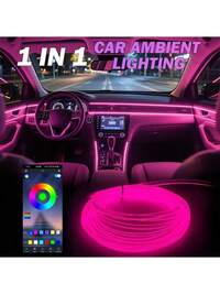 Balabaxer Tira de luces LED para coche con brillo ambiental para interiores de coches, camiones y SUV. Cable EL de neón multicolor USB de 5 V, 2,7 m, 4,8 m y 10,7 m con protección por fusible. Iluminación ambiental flexible e impermeable para salpicadero, espacio para pies, portavasos, terrazas, juegos de PC y decoración de escritorios.