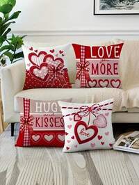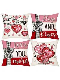 4pcs Valentine's Day Pillow Covers, "Love You More" Heart Striped Bow Print, Minimalist & Cute Peach Velvet Single-Sided Printed Cushion Covers With Zipper Closure, No Pillow Insert Included, Romantic Valentine's Day & Wedding Decor, Suitable For Sofa, Bed, Chair, Bedroom, Living Room, Patio Decoration #8 Bestseller