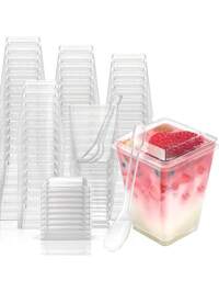 50/30/20/15/10 piezas Tazas reutilizables para pasteles, yogur de cold-brew, gelatina de leche de coco y avena con tapas, taza de yogur antirrotura y durable, caja para tartas, taza de postre transparente, adecuada para pasteles, mouse, magdalenas, helado, ideal para Navidad, excelente para Acción de Gracias #4 Más vendidos