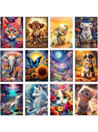 Mystara Paquete de 12 Kits de Pintura de Diamantes para Adultos, Juego de Pintura de Diamantes de Gato Animal como Regalo para Decoración de Pared del Hogar - Kit de Manualidades 5D DIY con Diamantes (Moderno-2)