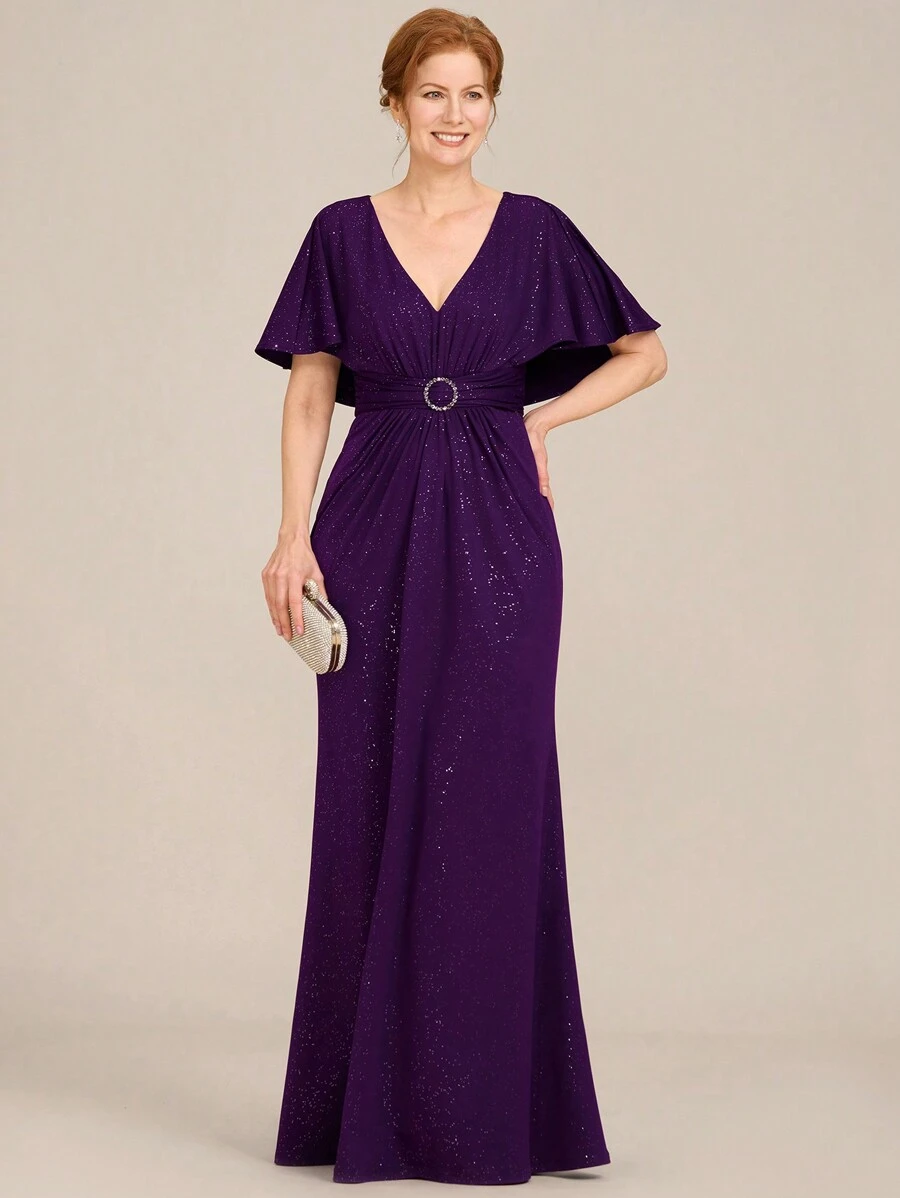 EVERPRETTY Women's V Neck Mermaid Hem Floor Length Sequin Mother Of The Bride Dress