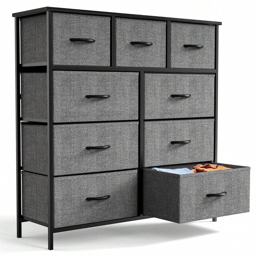 Fabric Storage Dresser With 9 Drawers, Steel Frame And Wooden Top For Bedroom, Closet And Entryway