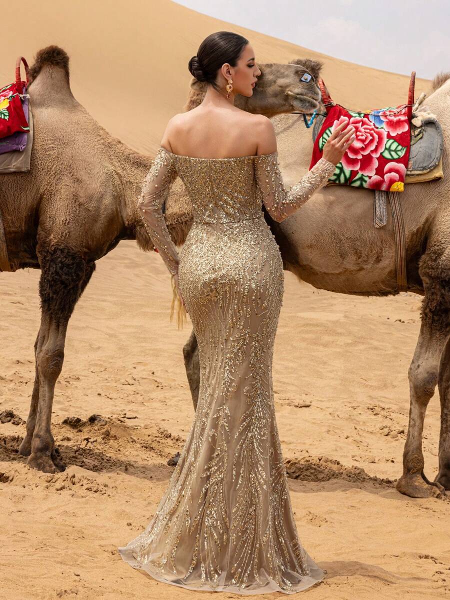 Faeriesty Glamour Luxe Mermaid Evening Gown With Sequin & Bead Embellishments, Open Shoulder Design & Floral Shoulder Accents – Fish-Tail Silhouette For Weddings, Red-Carpet Events, Evening Galas & Award Ceremonies New Year Outfit