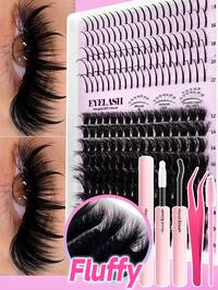612/640/600pcs False Eyelashes Set, Large Capacity, 30D+40D+50D+60D+80D+100D+120D+150D D-Curl Lashes, 8-16mm, DIY Fake Lashes, Natural & Thick, Delicate & Lightweight, Super Soft, Reusable, Individual Cluster Lashes, Eyelash Extension Kit, Suitable For Travel, Daily Wear (Beginner Friendly), Wedding, Date, Party, Holiday, Also Great As Christmas/Halloween/Gift Lash Set. 384pcs/Set Large Capacity D-Curl Fluffy False Eyelashes Kit, Thick & Voluminous, Multiple Combinations, Natural & Soft. The Set Includes Eyelash Glue, Adhesive, Setting Gel, Tweezers, And Eyelash Brush, Suitable For Sparse Lash Clusters And False Lashes. Suitable For Travel, Daily Wear (For Beginners), Weddings, Dates, Parties, Holidays, Also Makes A Great Christmas/Halloween/Gift Eyelash Set. Local