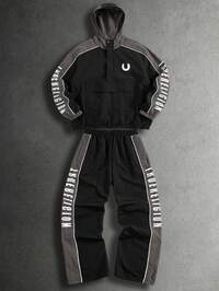 PAVTROSPAVTROS 2pcs Men's Vintage Style Tracksuit Set, Stand Collar Jacket And Pants, Blue & Black Color Block, Unique Bright Design, Suitable For Sports, Outdoor, Back To School, Casual Wear, Holiday Gift Men S Jogging Set Workout Sets Men Men S Track Suit Tracksuits Gym Clothes Men Set,Streetwear,Friends,Matching,Baggy,For Men,Graphic,Japanese Style,Unisex,I Love My Girlfriend #4 Bestseller