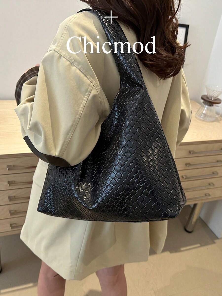 Fashionable Women's Woven Crescent Shoulder Bag, PU Leather Shoulder Bag With Coin Purse, Suitable For Shopping, Wallet, Young Women, College Students, Newlyweds, And Office Ladies. Ideal For Office, University, Work, Business, Commuting, Outdoor Activities, Travel And Picnics
