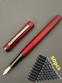 1pc Fountain Pen, With 50pcs Ink Bags, 0.5mm Sharp Tip, Artistic Calligraphy, Preferred For Creation, Metal Pen Holder, Elegant And High-End, Pen Holder Carved With Stripes, Built-In Ink Converter, Heavy Metal Feeling, Suitable For Schools, Students, Study Supplies, Units, Colleagues, Friends, Holiday Gifts, Valentine's Day, Back To School Season, Back To School Season, Graduation Season, Birthday Gifts, Christmas, Father's Day, Mother's Day, Teacher's Day, Thanksgiving, Signature, Calligraphy, Art, Fountain Pen Gifts#6 Bestseller