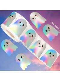 500pcs/Roll, Alien Laser Cute White Stickers Dance, Holiday Gift Box Decoration Stickers, Party Decoration Stickers, Halloween Stickers, Halloween Packaging Sealing Stickers, Personalized Birthday Stickers, Customize Stickers, Christmas Personalized Stickers, Halloween Treat Tags, Cute Stickers, Sealing Stickers For Packaging, Treat Bag Tags, Decorative Stickers, Laser Cut Stickers, Playful Holiday Decals, White Laser Cutouts, Detailed, Waterproof Adhesive