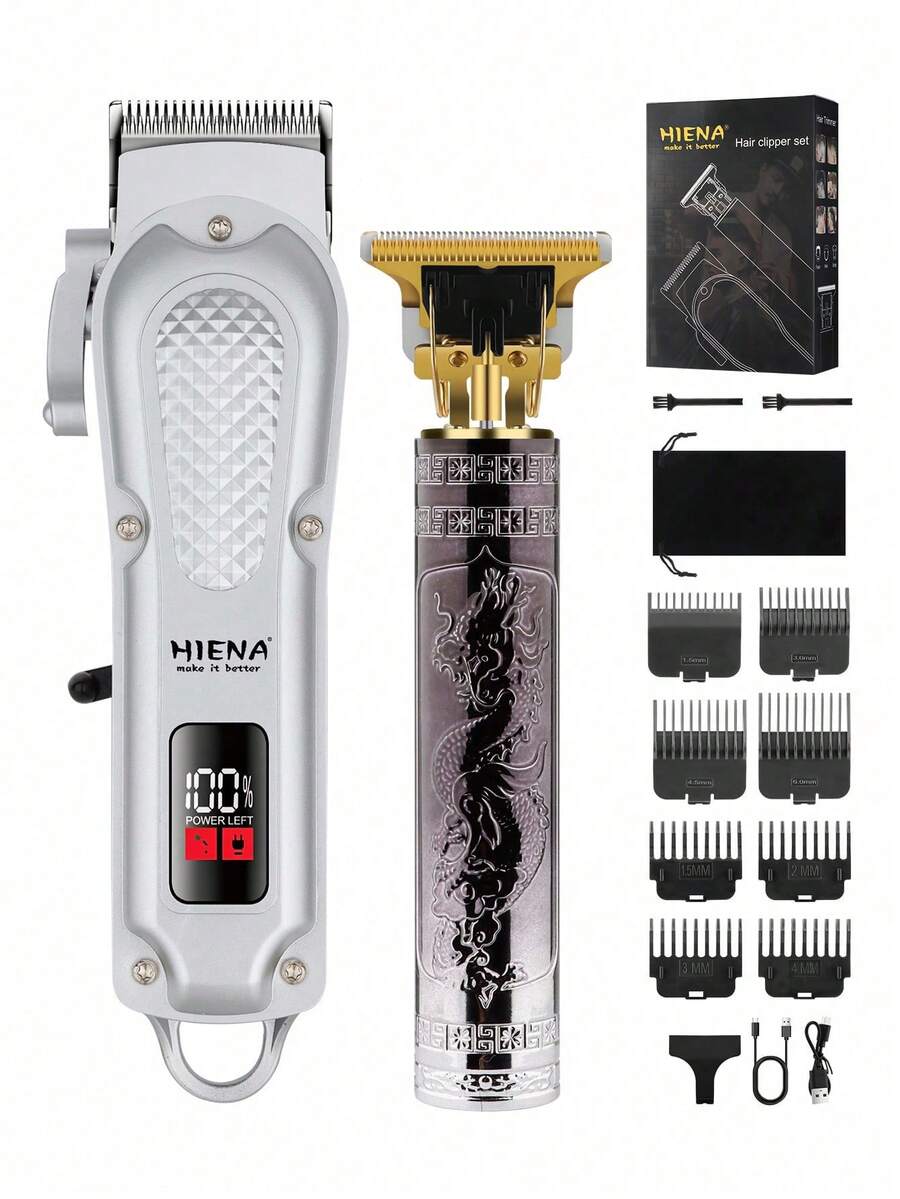HIENA 2pcs/Set Men's Haircut & Trimming Combo, T9 Blade, Digital Display Electric Hair Clipper, Integrated Tool Kit, Suitable For Home Use (Single Hair Clipper Also Available)