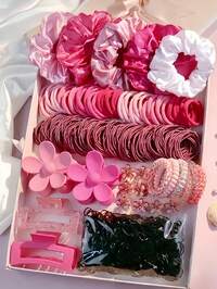 1142pcs/Set Delicate Pink Hair Accessories Set, Includes Satin Scrunchies, Colorful Hair Ties For Versatile Styling, Cute Floral Hair Clips, And Practical Claw Clips & Black Scrunchies - Suitable For Women & Girls, Ideal For Daily, Party And Other Occasions To Create A Sweet Look, Gifts For Women, Hair Bands, Head Accessories, Valentines Accessories #3 Bestseller
