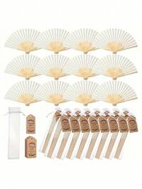 1/4/20/40pcs/Set Wooden Hand Fan, Wooden Folding Hand Fan With Sheer Bag, Thank You Card And Tassel, Suitable For Wedding Party Favors, Vintage Wooden Folding Fan, Wedding Fan, Elegant Wooden Folding Hand Fan, Elegant Chinese Style Wooden Folding Fan, Perfect For Weddings, Bridal Showers, Home Decor, Christmas Decorations, Room Decor#1 Bestseller