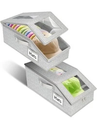 LEATVOOK 2PC/1PC Extra Large Baseball Hat Organizer , Hat Storage Box With Heavy-Duty Hidden Handle - Stackable Expandable Organizer, TPU Window & Cardboard Base, Non-Woven Fabric For Baseball Caps, Fitted/Fashion Glasses/Scarves - Holds 13-15 Hats (Grey, Foldable Closet Case), Bin, Can Organizer, Storage Organizer, Stackable Storage, Storage Container, Box Storage, Organizer Storage For Things, Storage Haven, Storage Boxes For Organizing, Organizer Bins, Multi Purpose Storage Box, Storage Bins For Shelves, Storage Box For,Perfect Christmas Gift.#2 Bestseller