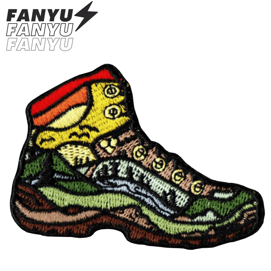 Hiked It Liked It Hiking Boot Sun Mountain River Stream Hippie Punk Rock Cool Anime Cartoon Outdoor Cycling Adventure Sticker Sewn Patch Personalized DIY Clothing Accessory Embroidery Sewing Iron-On Patch Applique Badge Emblem Clothing Decoration Patch Sticker Bag Accessory Hole Fixer Embroidered Patch
